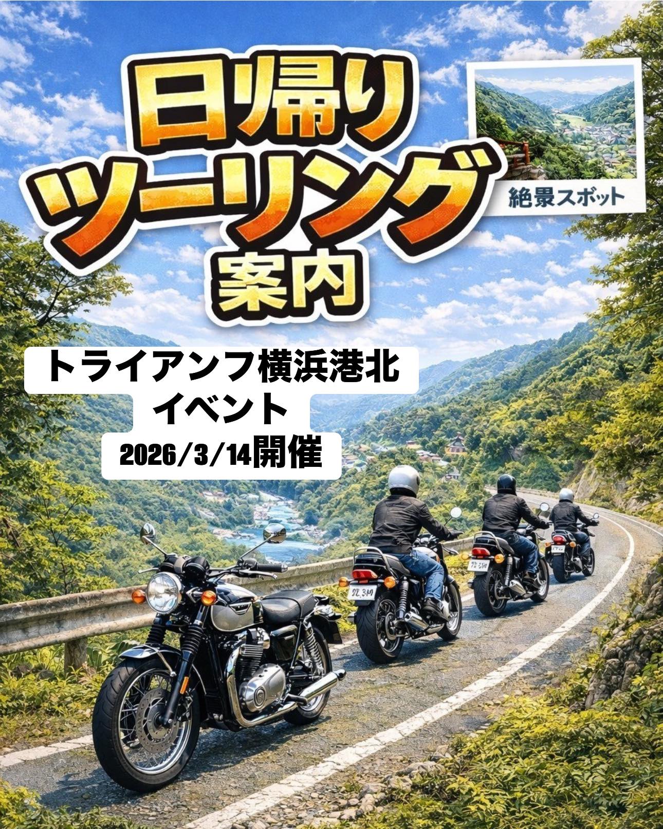 2026年トライアンフ横浜港北イベント企画第2弾!3月日帰りツーリング参加者募集のお知らせです。