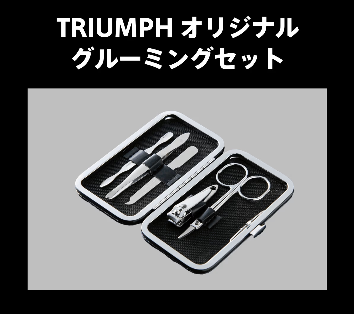 フェア期間中、全国のトライアンフ正規販売店にて対象モデルをご試乗いただいた方に「TRIUMPHオリジナルグルーミングセット」をプレゼント。