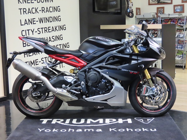 トライアンフ横浜港北 新車情報 試乗車 試乗車一覧 在庫車 在庫車バイク一覧 アクセサリー クロージング クロージング クロージングカタログ ニュース 新着情報 オーナー様ご紹介 スタッフブログ イベント情報 店舗情報 店舗情報 イベントカレンダー お問い合わせ 金融商品の販売に関して オンラインサービス予約 新車情報 試乗車 試乗車一覧 在庫車 アクセサリー クロージング クロージング クロージングカタログ ニュース 新着情報 オーナー様ご紹介 スタッフブログ イベント情報 店舗情報 イベントカレンダー お問い合わせ 金融商品の販売に関して オンラインサービス予約 ホーム> 在庫車 トライアンフ 在庫車情報 在庫車一覧 店頭販売のみ ストリートカップ オーリンズエディション トライアンフ横浜港北限定モデル (価格:\1,375,000) トライアンフ横浜港北の限定カスタマイズモデル、ストリートカップ・オーリンズエディションのワンオーナー車両が入荷いたしました。オーリンズ公認の特別な仕様となっております。フロントはオーリンズカートリッジ、リアはオーリンズツインショック、フロントはブレンボブレーキキャリパーを装着。さらにWM・ウェリントン社製バックステップキット、当店オリジナルニーガードキットも追加装着。当店特製の特別な1台でございますので、店頭にて車体の確認、ならびに今後のメンテナンスを当店にてうけて頂けるお客様に限ってご案内させていただきます。皆様のお問い合わせお待ちしております。 デイトナ675R 2015モデル マットカラー (価格:\1,265,000) 2015年モデルのデイトナ675Rが入荷いたしました。2016年に販売が完了した現在では希少なモデルです。メーカー純正のエンジンカバープロテクター、フレームプロテクター、ETC1.0を装着ずみ。車検整備、タイヤは当店指定銘柄に交換してご納車致します。非常に特別な1台でございますので、店頭にて車体の確認、ご契約、ならびに今後のメンテナンスを当店にてうけて頂けるお客様に限ってご案内させていただきます。1台限り、皆様のお問い合わせお待ちしております。 スピードトリプル1200RS 2022 サファイアブラック (価格:\1,265,000) スピードトリプル1200RSの2022モデル、ワンオーナー車両が入荷いたしました。メーカー純正アクセサリーを装着しております。内容はフレームプロテクター、フォークプロテクター、グリップヒーター、フライスクリーン&バイザーキット、タンクパッド。さらにETC2.0とカーボンタイプのヒールガード&サイレンサーエンドも変更ずみ。車検は令和8年11月まで有効です。1台限り、ぜひお早めにお問い合わせください。 1 / 11